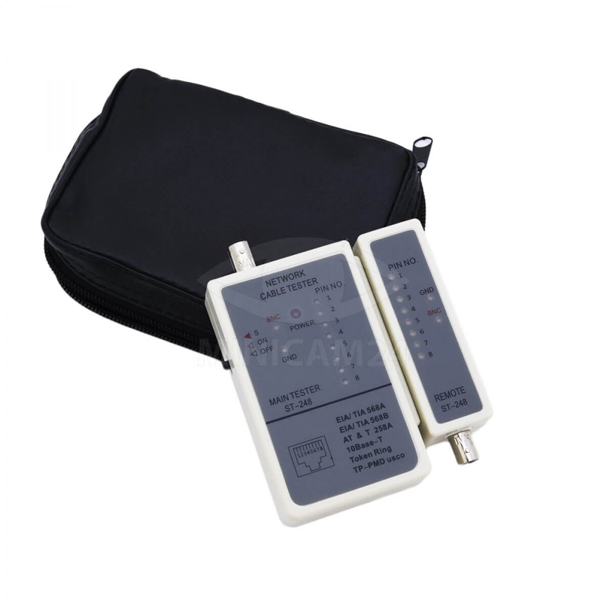 Используется для тестирования электролиний с коннекторами типа BNC, RJ-45. Инструмент способен определить исправность или неисправность провода. Тестер витой пары состоит из двух частей: генератора сигнала и детектора приемника. Прибор позволяет проверить правильность соединений и найти механические повреждения коаксиального и телефонных проводов. Максимальная длина исследуемого участка - 305 метров.