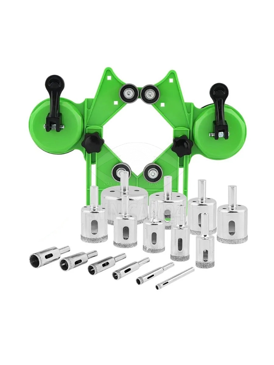 Вакуумный кондуктор для сверления плитки и стекла Vakuro PL с набором алмазных коронок 15 шт.